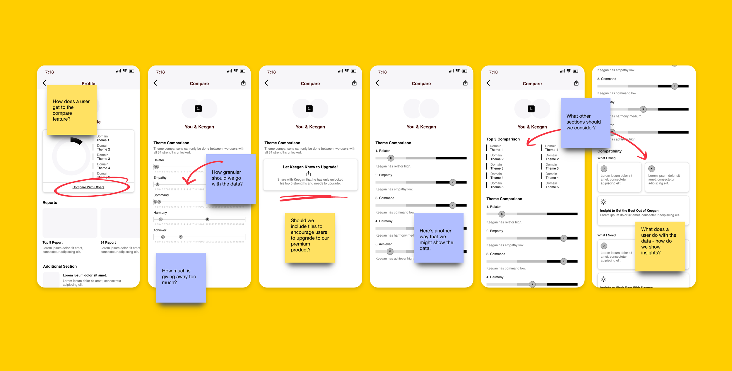 Screens from the new compare and team features that I had designed for the mobile app