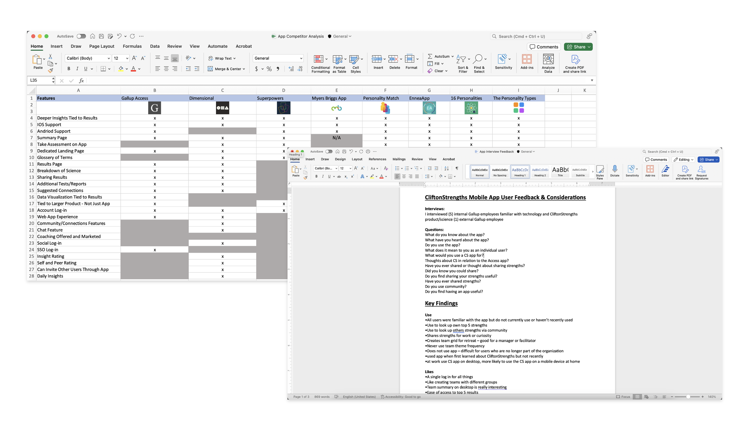 Competitor analysis and user interview notes