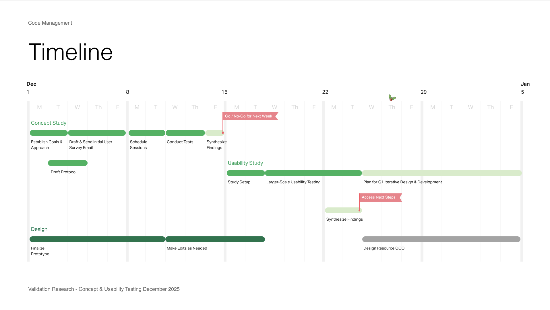 Timeline for concept and validation testing
