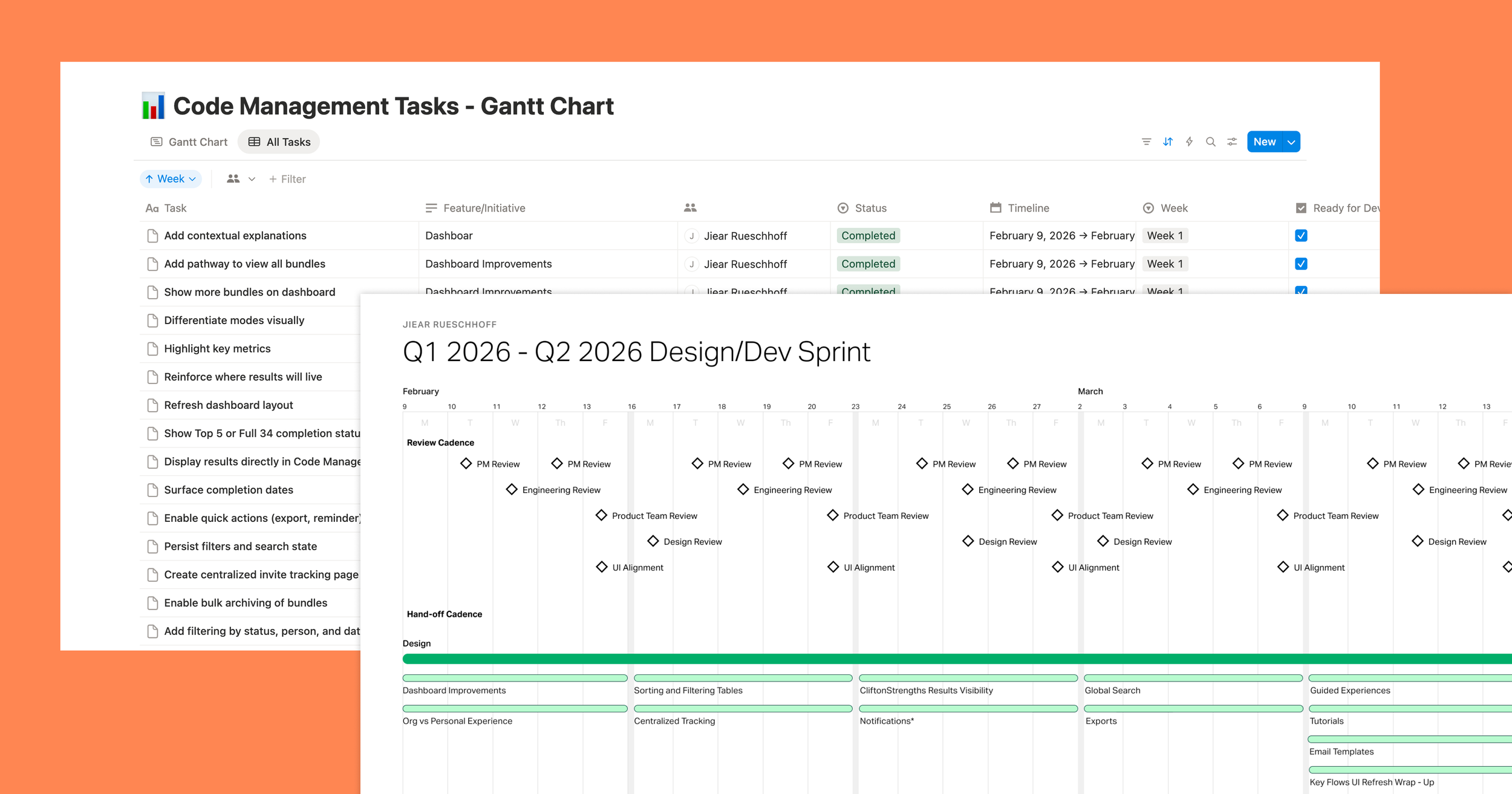 This project is currently in progress, with a strong focus on close collaboration with product and engineering to finalize scope and prepare for development. To manage complexity and maintain alignment, I implemented a lightweight planning system in Notion, tracking incoming and outgoing work while creating a high-level Gantt view for stakeholders.