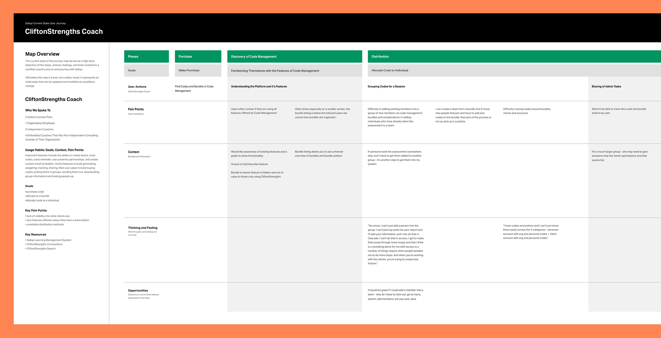 The current Code Management is confusing and inefficient, especially for enterprise admins, internal support teams, and coaches. I was tasked to simplify the Code Management distribution and management experiences, by making it easier to invite participants, track completion, and purchase additional assessments with minimal effort and full visibility. I was responsible for the deep dive analysis of the current tool, owning the research and design phases, and leading the overall design vision for this new experience, with 0-1 mock-ups within a 6 month timeline.