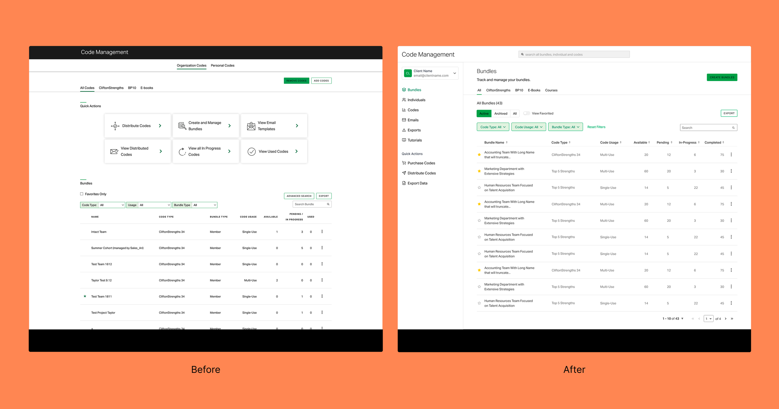 Before and After of the Enhanced Code Management Bundles Screen