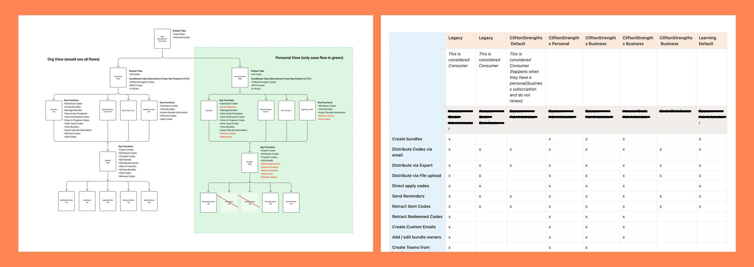 To deepen this, I partnered with my project manager and sales to document subscription tiers and associated feature sets. I then layered these into the sitemap, enabling a clear comparison between organizational and individual offerings. This helped reveal overlaps, inconsistencies, and opportunities to better align the experience with how the product is actually packaged and sold.